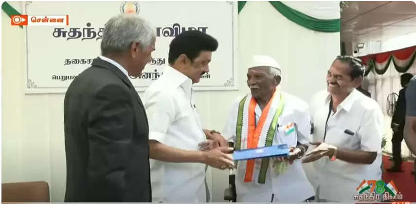இந்தியாவின் 78-வது சுதந்திர தின விழாவையொட்டி செயின்ட் ஜார்ஜ் கோட்டையில் முதலமைச்சர் மு.க.ஸ்டாலின், தேசியக் கொடியை ஏற்றி வைத்து மரியாதை செலுத்தினார். தொடர்ந்து சுதந்திர தின உரையை நிகழ்த்திய அவர், தகைசால் தமிழர் விருது, ஏபி.ஜே. அப்துல்கலாம் விருந்து உள்ளிட்ட சுதந்திர தின முதலமைச்சர் விருதுகளை வழங்கினார். அதன்படி தகைசால் தமிழர் விருது, காங்கிரஸ் கட்சியின் மூத்த தலைவர் குமரி அனந்தனுக்கு வழங்கப்பட்டது. விழுப்புரத்தைச் சேர்ந்த, இஸ்ரோவின் சந்திராயன் -3 விண்கல திட்ட இயக்குனர் பி.வீரமுத்துவேலுக்கு டாக்டர் ஏ.பி.ஜே.அப்துல் கலாம் விருது வழங்கப்ட்டது.
