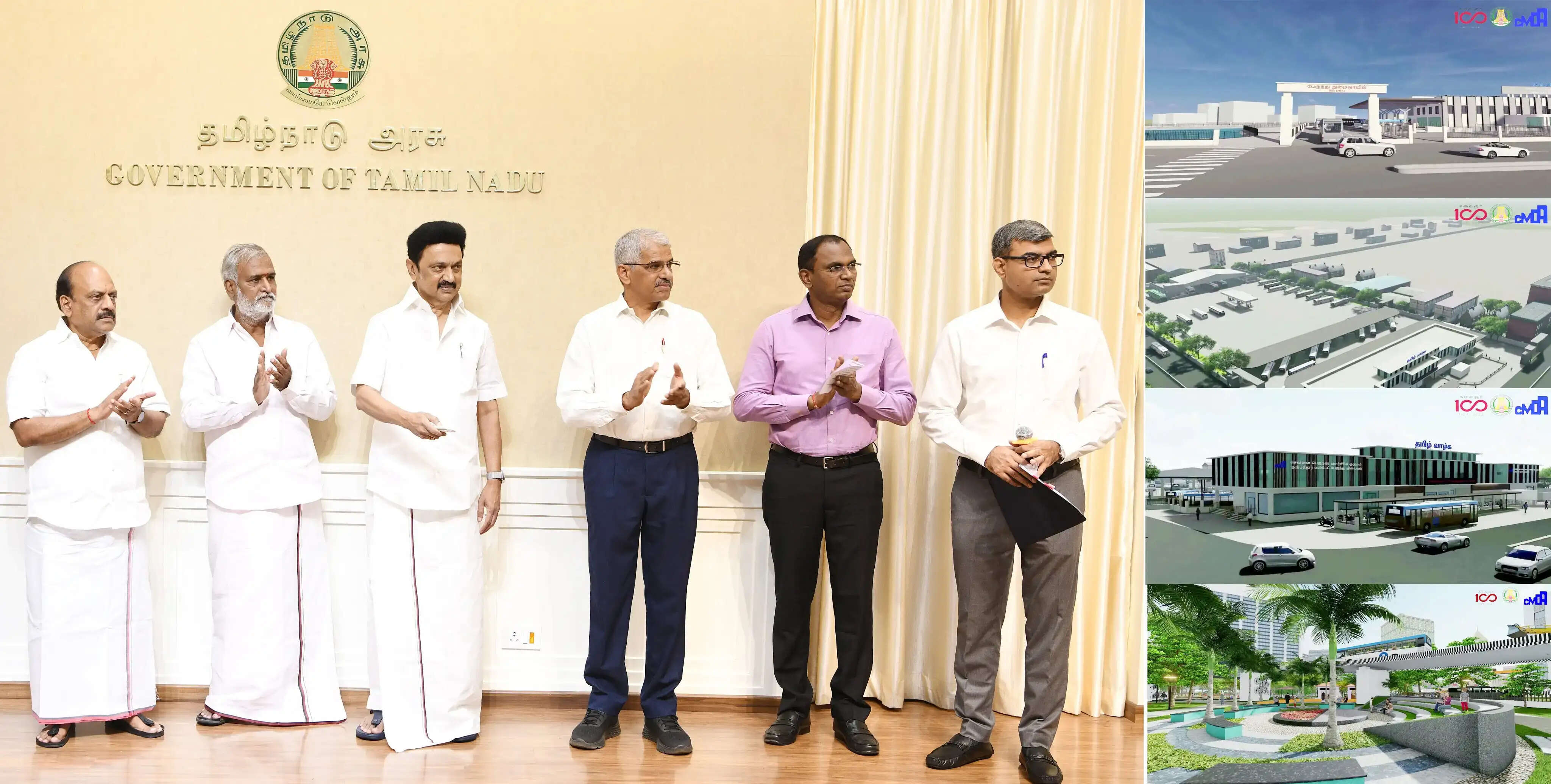 அந்த வகையில், சென்னைப் பெருநகர் வளர்ச்சிக் குழுமம் சார்பில் செங்கல்பட்டு மாவட்டம், வெண்பாக்கத்தில் 97 கோடி ரூபாய் மதிப்பீட்டில் கட்டப்படவுள்ள புதிய பேருந்து நிலையம், அம்பத்தூர் பேருந்து நிலையத்தில் 13.85 கோடி ரூபாய் மதிப்பீட்டில் பேருந்து நிலையத்தை மேம்படுத்தும் பணி, கொண்டித்தோப்பில் 11.50 கோடி ரூபாய் மதிப்பீட்டில் கட்டப்படவுள்ள மாற்றுத்திறனாளிகளுக்கான மறுவாழ்வு மையம் மற்றும் இரத்த சுத்திகரிப்பு மையம், கோயம்பேடு சாலை சந்திப்பில் 10.30 கோடி ரூபாய் மதிப்பீட்டில் அமைக்கப்படவுள்ள இயற்கை வனப்புடன் புதிய பூங்கா, மயிலாப்பூர், முண்டகக் கண்ணியம்மன் கோயில் அருகில் பெருநகர சென்னை மாநகராட்சி விளையாட்டு மைதானத்தில் 8.75 கோடி ரூபாய் மதிப்பீட்டில் கட்டப்படவுள்ள புதிய உள்விளையாட்டு அரங்கம் மற்றும் காசிமேடு கடற்கரை பகுதியில் 8.65 கோடி ரூபாய் மதிப்பீட்டில் கடற்கரை பகுதியை மேம்படுத்தும் பணி; என மொத்தம் 150 கோடியே 5 இலட்சம் ரூபாய் மதிப்பீட்டில் சென்னைப் பெருநகர் வளர்ச்சிக் குழுமம் சார்பில் மேற்கொள்ளப்படவுள்ள திட்டப் பணிகளுக்கு மாண்புமிகு தமிழ்நாடு முதலமைச்சர் அவர்கள் அடிக்கல் நாட்டினார்.