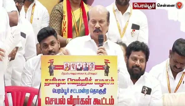சென்னை பெரம்பூரில் தவெக செயல் வீரர்கள் கூட்டம் நடைபெற்றது. அதில் கலந்து கொண்டு பேசிய தவெக நிர்வாகி வி.எஸ்.பாபு, “விசில் சின்னத்தை பார்த்து அனைவரும் பயப்படுகிறார்கள். தூய்மை பணியாளர்களை விசிலடிக்க வேண்டாம் என கார்ப்பரேசன் அறிவுறுத்தியுள்ளது. விசில் அடிக்காவிடில் உதைப்பேன் என கூறியதும் தூய்மை பணியாளர் விசில் அடித்துவிட்டார்” எனக் கூறினார்.