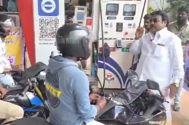 'ஹெல்மெட் அணிந்து சென்றால் 1 லிட்டர் பெட்ரோல் இலவசம்'- விஜய்காந்த் வேடத்தில் வந்து சர்ப்ரைஸ்