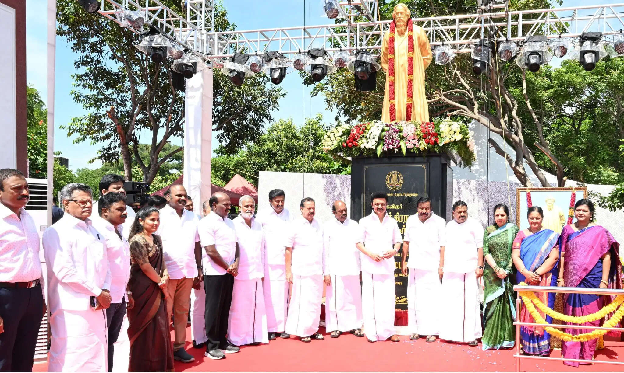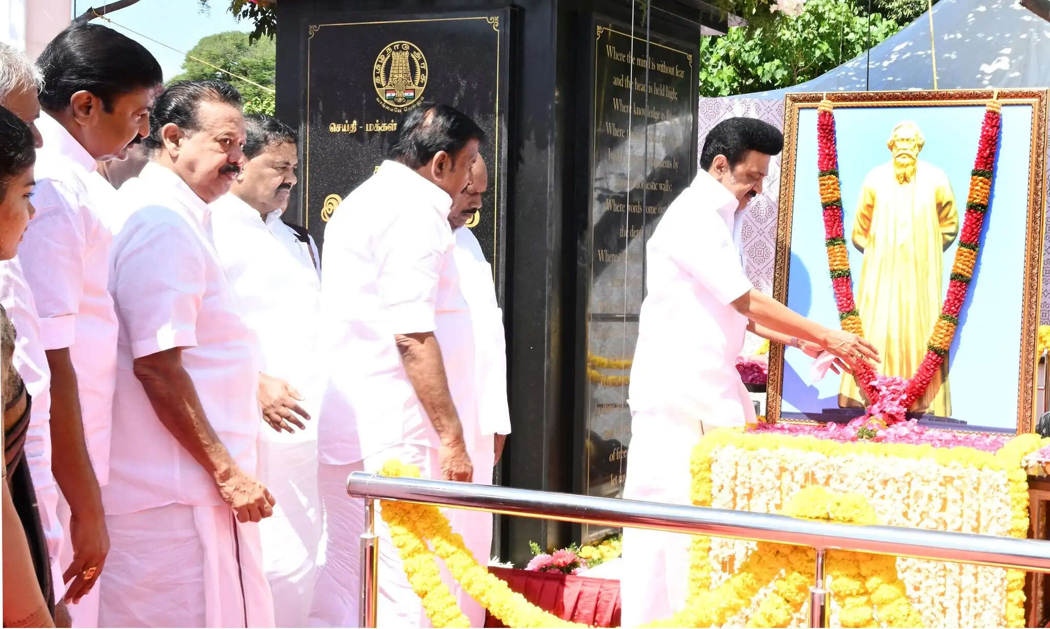செய்தி மக்கள் தொடர்புத் துறையின் சார்பில் சென்னை, இராணி மேரி கல்லூரி வளாகத்தில் புதிதாக நிறுவப்பட்டுள்ள கவிஞர் இரவீந்திரநாத் தாகூர் அவர்களின் திருவுருவச் சிலையை மாண்புமிகு முதலமைச்சர் @mkstalin அவர்கள் திறந்து வைத்து, அதன் அருகில் வைக்கப்பட்டுள்ள அவரது திருவுருவப் படத்திற்கு… pic.twitter.com/jQEnZAR2yq