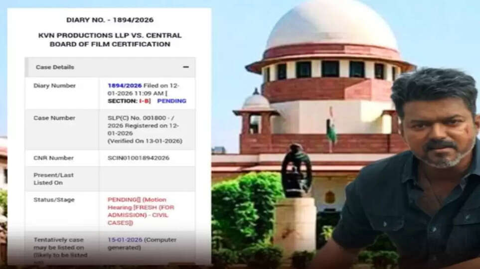 ஜனநாயகன் தணிக்கைச்சான்று வழக்கு ஜன.15 ஆம் தேதி உச்ச நீதிமன்றத்தில் விசாரணைக்கு வருகிறது. உச்ச நீதிமன்ற நீதிபதி திபங்கர் தத்தா நீதிபதி அகஸ்டின் ஜார்ஜ் மாசி ஆகியோர் அடங்கிய அமர்வு வழக்கை விசாரணைக்கு எடுத்துக் கொள்கிறடு. அன்றைய தினம் 21 வது வழக்காக விசாரணைக்கு வருகிறது.