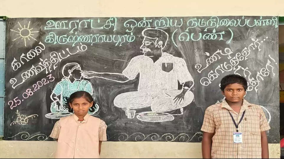 முதலமைச்சரின் காலை உணவுத் திட்டத்துக்கு, கரூர் மாவட்டம் கிருஷ்ணராயபுரம் நடுநிலைப்பள்ளி மாணவர்கள் ஓவியம் மூலம் நன்றி தெரிவித்தனர்.