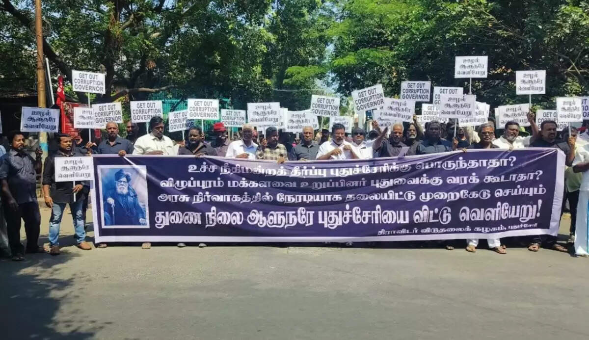 மக்களால் தேர்ந்தெடுக்கப்பட்ட அரசுக்கே அதிகாரம் இருப்பதாகவும், ஆளுநர் மாநில அமைச்சரவைக்கு கட்டுப்பட்டவர் என என உச்சநீதிமன்றம் அண்மையில் தீர்ப்பு வழங்கியது. ஆனால் இந்த தீர்ப்பு டெல்லிக்கு மட்டுமே பொருந்தும், புதுச்சேரிக்கு பொருந்தாது என அம்மாநில துணைநிலை ஆளுநர் தமிழிசை தெரிவித்திருக்கிறார். ஆளுநரின் இந்தக் கருத்தைக் கண்டித்தும், புதுச்சேரி அரசு நிர்வாகத்தில் தலையிடும் ஆளுநர் தமிழிசை புதுச்சேரியை விட்டு வெளியேற வேண்டும் என வலியுறுத்தியும் பல்வேறு கட்சிகள் மற்றும் அமைப்புகளைச் சேர்ந்தவர்கள் ஆளுநர் மாளிகையான ராஜ்நிவாஸை முற்றுகையிட முயன்றனர்.