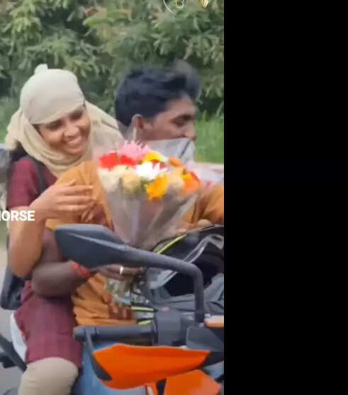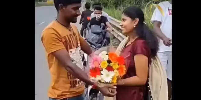 மூன்று இருசக்கர வாகனத்தில் வந்த அவரது நண்பர்கள் I love U சிம்ப்ல் கொண்ட டி ஷர்டை அணிந்து வந்தனர். பின்னர் பின்னால் வந்த ஒருவர் பூச்செண்டை தனது நண்பரிடம் கொடுக்க அதனை தன் காதலியிடம் கொடுத்தார் அந்த இளைஞர். இந்த நிகழ்வில் வந்த யாரும் ஹெல்மெட் அணியவில்லை.