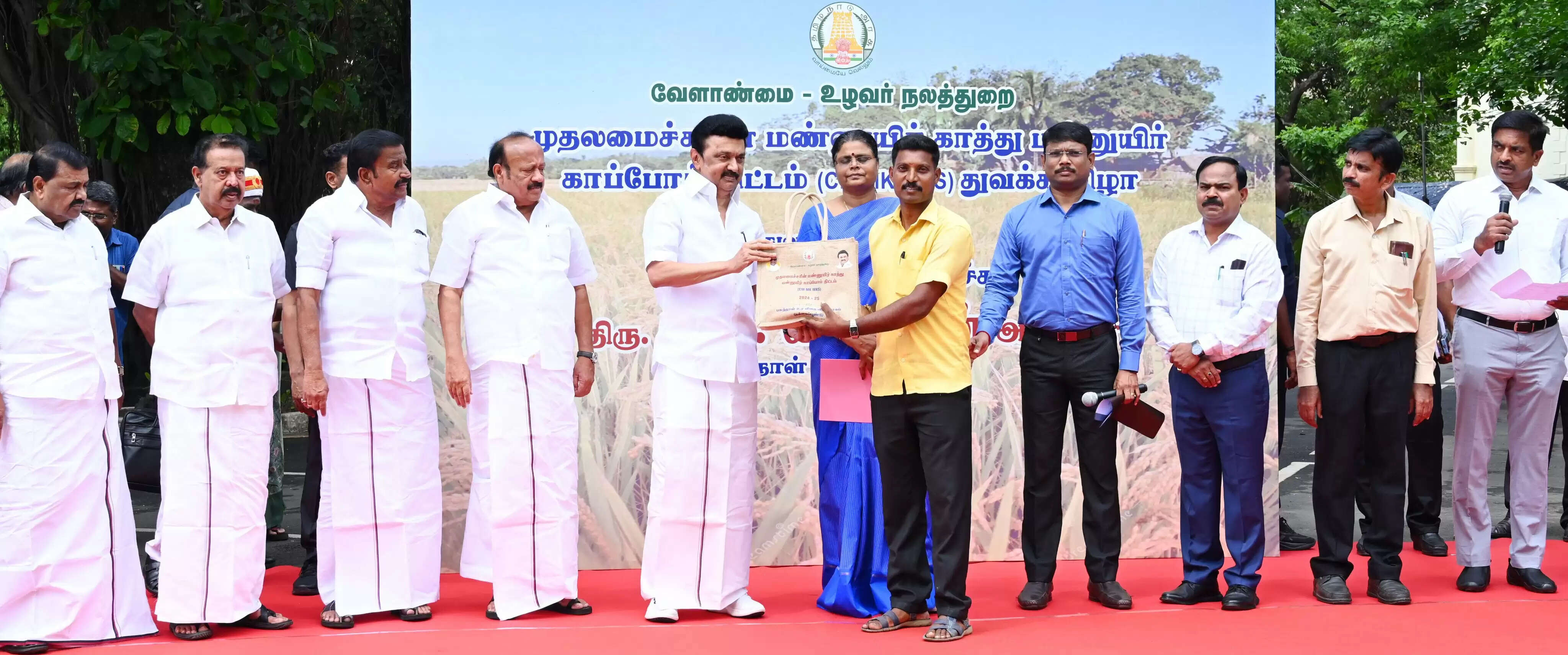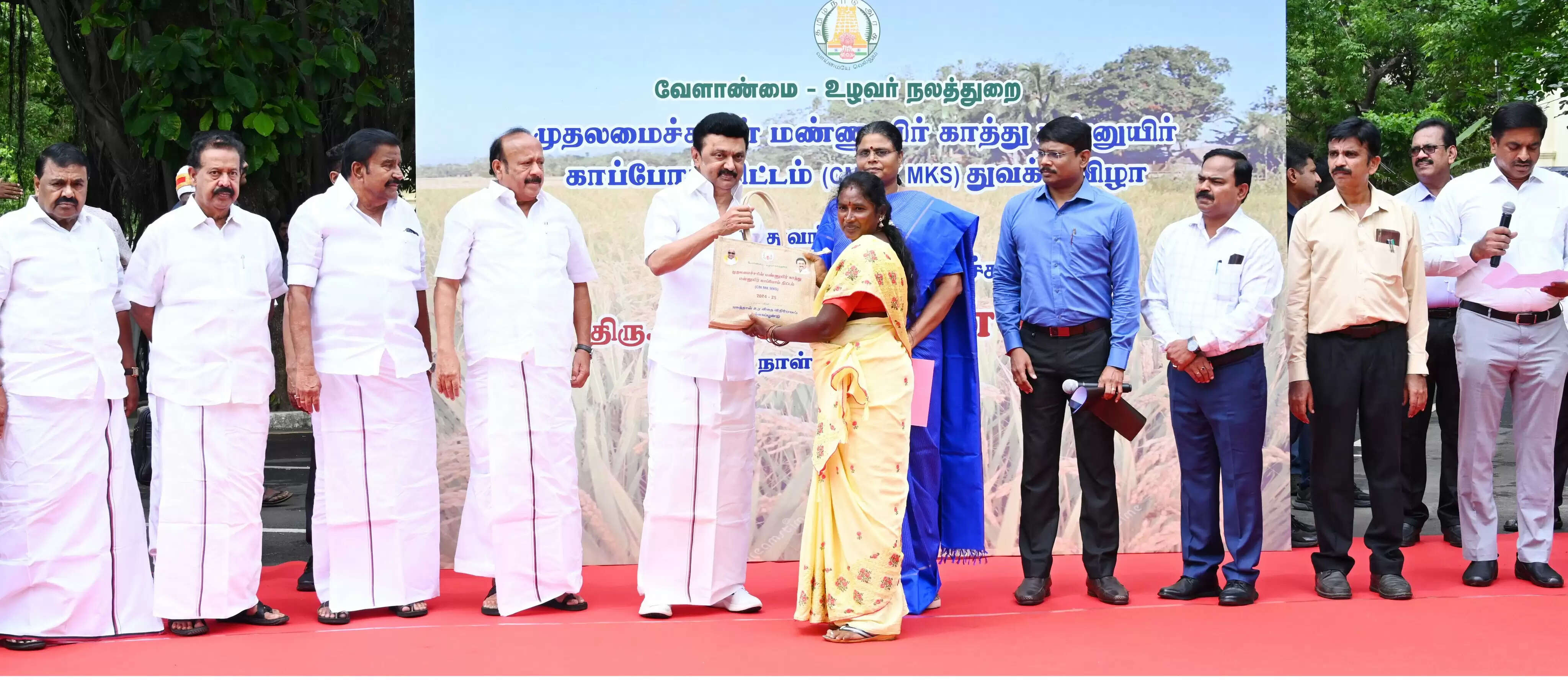 முதலமைச்சர் ஸ்டாலின் ரூபாய் 206 கோடி மதிப்பீட்டில் முதலமைச்சரின் மண்ணுயிர் காத்து மன்னுயிர் காப்போம் திட்டம் என்ற புதிய திட்டம், 25 கோடி மதிப்பீட்டில் குறைந்த வாடகையில் விவசாயிகளின் பயன்பாட்டிற்காக டிராக்டர்கள், கொத்துக் கலப்பைகள் & ரோட்டவேட்டர்கள் வழங்குதல் & ஒரு கோடி மதிப்பீட்டில் கிராமப்புற இளைஞர்களுக்கு டிராக்டர் இயக்குவதற்கு பயிற்சி என மொத்தம் ரூபாய் 232 கோடி ரூபாய் மதிப்பிலான திட்டங்களை தொடங்கி வைத்தார்.