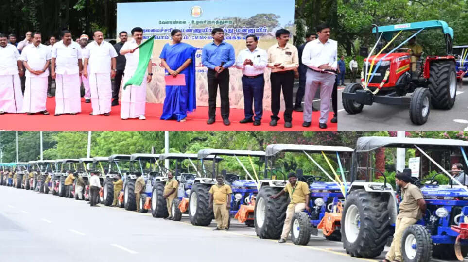 அந்த அறிவிப்பிற்கிணங்க, வேளாண்மைப் பொறியியல் துறையின் மூலம் 10.25 கோடி ரூபாய் மதிப்பீட்டில் கொள்முதல் செய்யப்பட்ட 90 டிராக்டர்கள், 180 கொத்துக் கலப்பைகள் மற்றும் 90 ரோட்டவேட்டர்கள் ஆகியவற்றினை அரசால் நிர்ணயம் செய்யப்பட்ட குறைந்த வாடகையில் விவசாயிகளின் பயன்பாட்டிற்காக வழங்கிடும் விதமாக மாண்புமிகு தமிழ்நாடு முதலமைச்சர் அவர்கள் டிராக்டர்களை கொடியசைத்து தொடங்கி வைத்தார்.