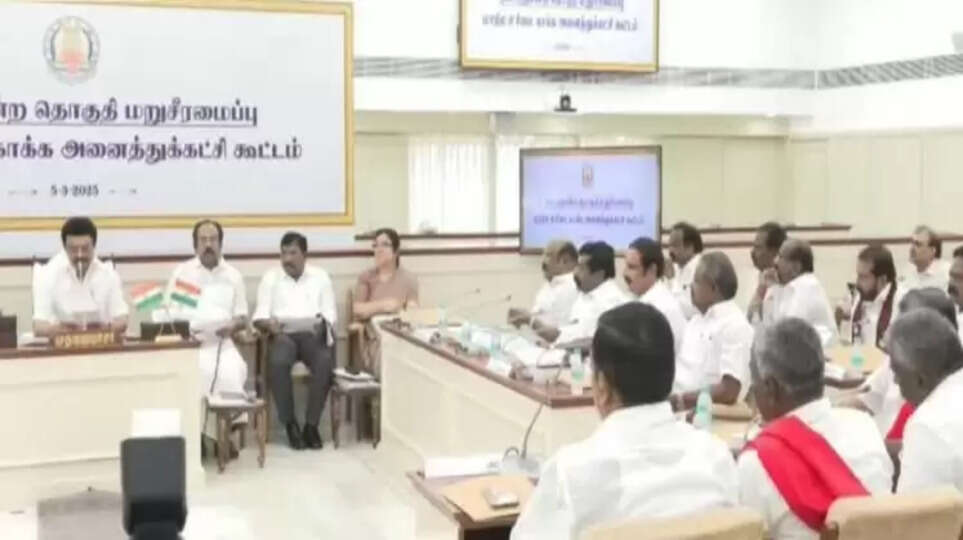 தொகுதி மறுசீரமைப்பு நடவடிக்கையினால் தமிழ்நாட்டிற்கு ஏற்படப்போகும் பேராபத்தைத் தடுத்து நிறுத்தும் நோக்கில் திமுக தலைவரும், முதலமைச்சருமான மு.க.ஸ்டாலின் தலைமையில் இன்று அனைத்துக் கட்சிக் கூட்டம் நடைபெற்றது. முதலமைச்சர் அவர்களால் கூட்டப்பட்ட அரசியல் முக்கியத்துவம் வாய்ந்த இந்த அனைத்துக் கட்சிக் கூட்டமானது தலைமைச்செயலகத்தில் இன்று காலை 10 மணிக்குத் தொடங்கி மதியம் 2.30 வரைக்கும் நடைபெற்றது. 63 அரசியல் கட்சிகள் அழைக்கப்பட்டிருந்த நிலையில் 58 அரசியல் கட்சிகளின் பிரதிநிதிகள் கலந்து கொண்டது ஒரு வரலாற்று சிறப்புமிக்க நிகழ்வாகும். திமுக சார்பில் அமைப்புச் செயலாளர் ஆர்.எஸ்.பாரதி, எம்.பி வில்சன் ஆகியோர் கலந்து கொண்டனர்.