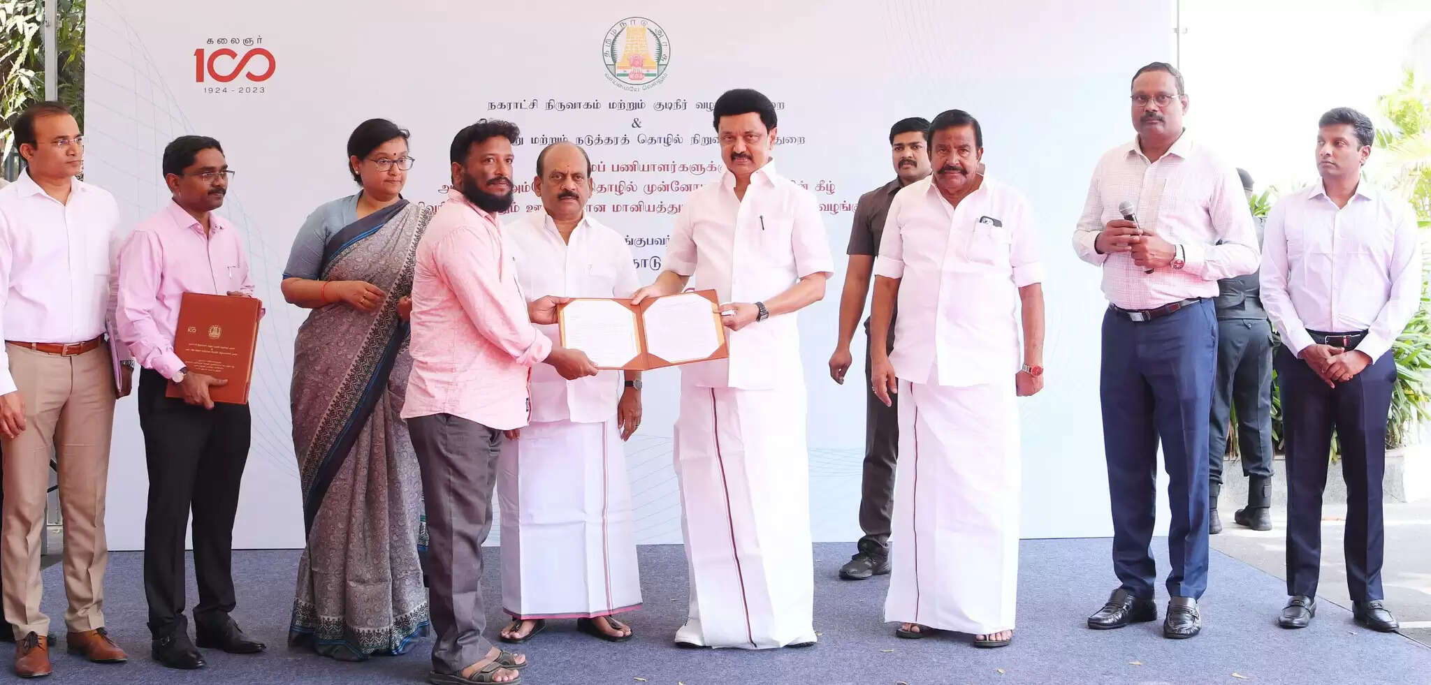 தூய்மைப் பணியாளர்களை தொழில்முனைவோர்களாக மாற்றுவதற்கான உன்னத நோக்கத்தின் அடிப்படையில் 213 தூய்மைப் பணியாளர்களுக்கு நவீன கழிவு நீர் அகற்றும் ஊர்திக்கான கடனுதவிக்கான ஆணைகளை முதல்வர் ஸ்டாலின் வழங்கினார்.