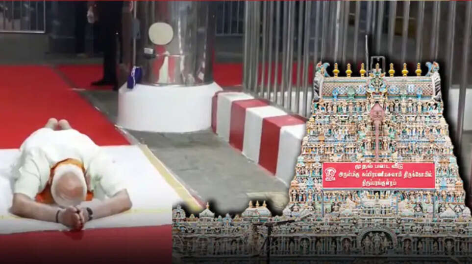 திருப்பரங்குன்றம் முருகன் கோயிலில் சாஷ்டாங்கமாக விழுந்து வழிபட்டார் பாரத பிரதமர் மோடி.