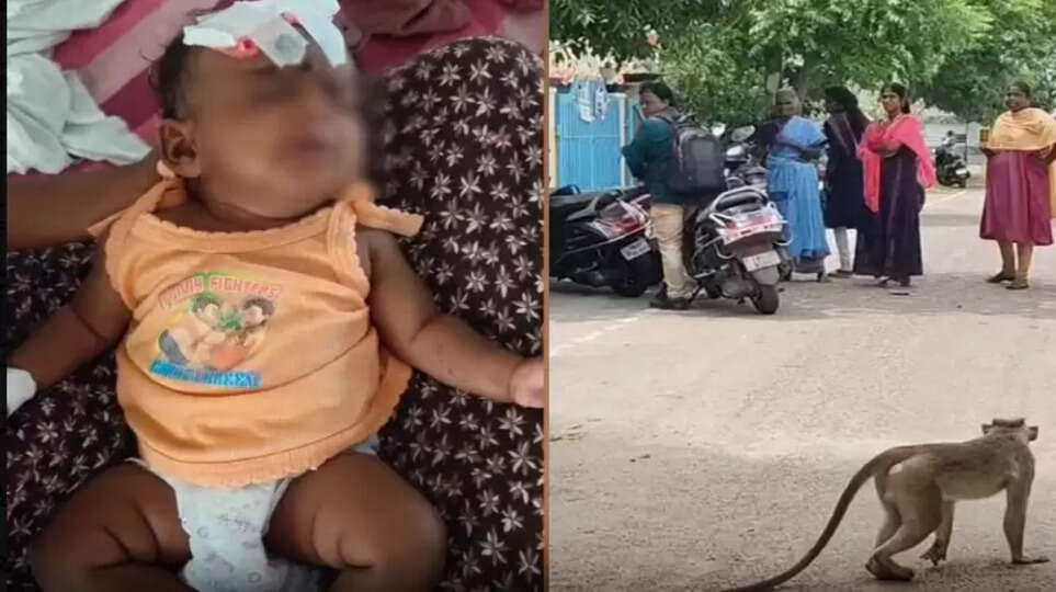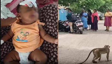 தொட்டிலில் தூங்கி கொண்டிருந்த குழந்தையை கொடூரமாக கடித்த குரங்கு