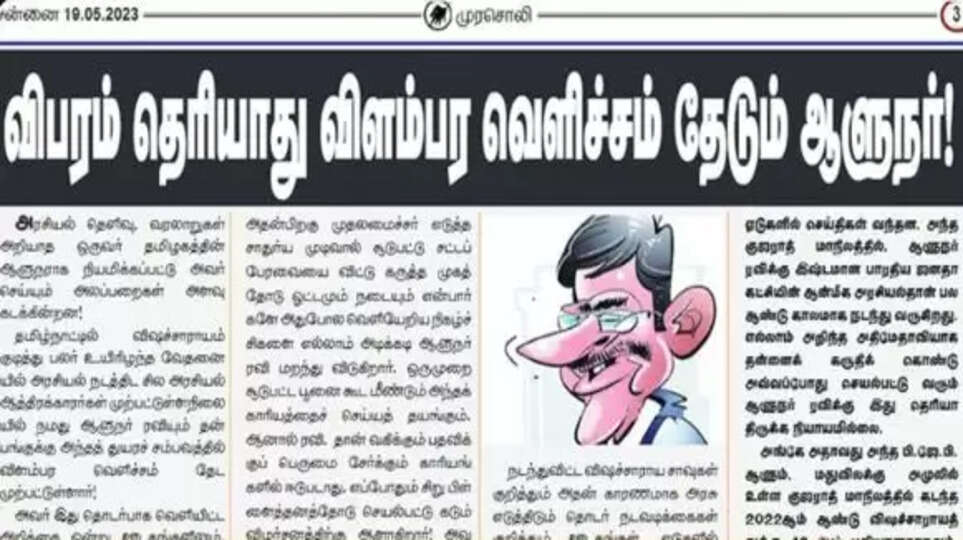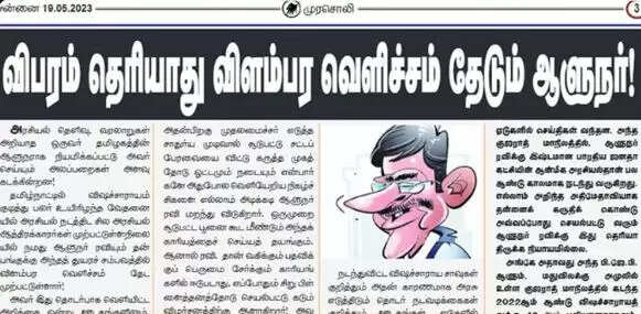 இந்நிலையில் விஷ சாராயம் தொடர்பாக தமிழ்நாடு அரசிடம் விளக்கம் கேட்டு ஆளுநர் அறிக்கை வெளியிட்டதை விமர்சித்து முரசொலியில் கட்டுரை வெளியாகியுள்ளது. விஷ சாராய உயிரிழப்பு சம்பவத்தில் விளம்பர வெளிச்சம் தேட முற்பட்டுள்ளார் ஆளுநர். விஷசாராய உயிரிழப்பில் அறிக்கை கேட்டது தவறு இல்லை. கேட்ட விதம் தான் தவறு; விவரங்களை மூத்த அதிகாரியை நேரிலோ , தொலைபேசியிலோ அழைத்து ஆளுநர் அறிந்து கொள்ள முடியும்.