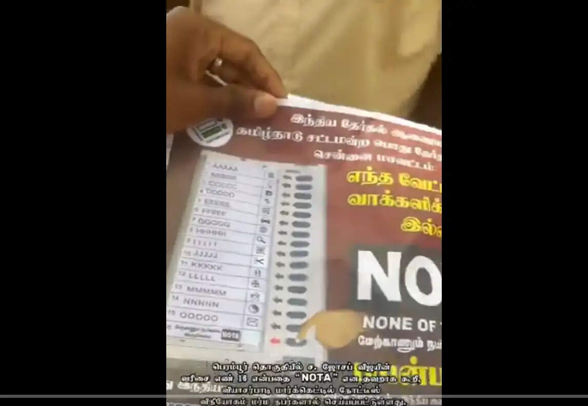 விஜய் பெயர் இருக்கும் இடத்தில் நோட்டா சின்னம் அச்சிடப்பட்டு பெரம்பூர் தொகுதியில் கொடுப்பட்ட நோட்டீஸால் பரபரப்பு ஏற்பட்டுள்ளது.