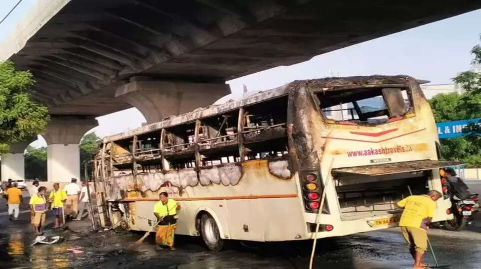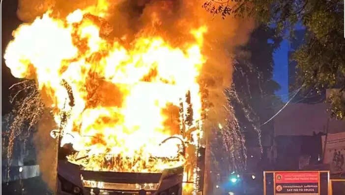 கோவை பீளமேடு அருகே பற்றி எரிந்த ஆம்னி பேருந்து