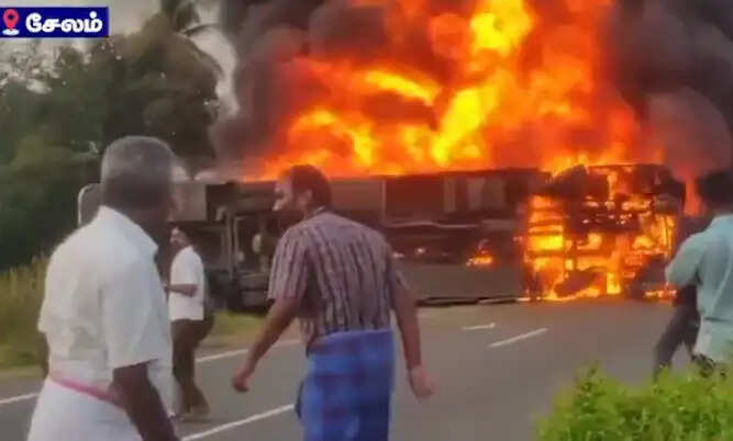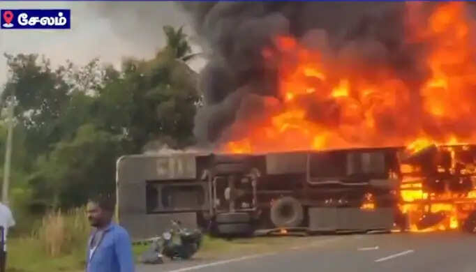 பற்றி எரிந்த பேருந்து- கண்ணாடியை உடைத்து வெளியேறிய பயணிகள்! சேலத்தில் பரபரப்பு
