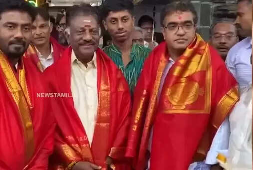 திருப்பதி ஏழுமலையான் கோயிலில் கொட்டும் மழையில் குடை பிடித்தபடி முன்னாள் முதல்வர் பன்னீர்செல்வம் அவரது மகனும் எம்.பி.யுமான ரவீந்திரநாத் இன்று காலை நடைபெற்ற வி.ஐ.பி. தரிசனத்தில் புரட்டாசி மாதம் என்பதால் சாமி தரிசனம் செய்தனர். இதையடுத்து ரங்கநாதர் மண்டபத்தில் தேவஸ்தான அதிகாரிகள் தீர்த்தப் பிரசாதங்களைப் வழங்கி வேத பண்டிதர்கள் மூலம் வேத ஆசிர்வாதம் செய்து வைத்தனர். இதையடுத்து கோவிலுக்கு எதிரே உள்ள பேடி ஆஞ்சநேயர் சுவாமி கோயிலில் தரிசனம் செய்து அகிலாண்டம் அருகே தேங்காய் உடைத்து வழிபட்டனர். இதையடுத்து கார் மூலம் சென்னை புறப்பட்டு சென்றனர்.