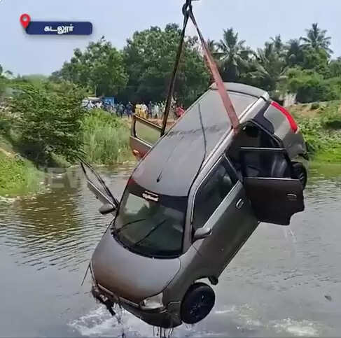 கடலூர் மாவட்ட ஆட்சியர் அலுவலகம் எதிரில் தென்பெண்ணை ஆறு உள்ளது. இந்த ஆற்றின் குறுக்கே புதுவை மாநிலத்தை இணைக்கும் தரைப்பாலம் உள்ளது. நேற்று இரவு இந்த தரைப்பாலத்தில் கார் ஒன்று சென்று கொண்டிருந்தது. அப்போது கடலூரில் இடி மின்னலுடன் கனமழை பெய்து வந்த நிலையில் தரைப்பாலத்தில் சென்று கொண்டிருந்த கார் தென்பெண்ணை ஆற்றில் இருந்த தண்ணீரில் கவிழ்ந்து விபத்து ஏற்பட்டது. கார் கவிழ்ந்த வேகத்தில் முழுவதுமாக தண்ணீரில் மூழ்கியது. இதை அடுத்து காரில் பயணம் செய்த ஐந்து பேர் காருக்குள் மாட்டிக் கொண்டு தத்தளித்தனர். இவர்கள் 5 பேரும் காரின் கதவை உடைத்து தண்ணீரில் நீந்தி அதிஷ்டவசமாக உயிர் தப்பினர்.