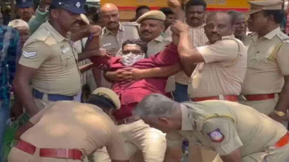 சாலைமறியலில் ஈடுபட்ட ஊராட்சி மன்ற தலைவர்களை குண்டு கண்டாக தூக்கி சென்ற போலீஸ்