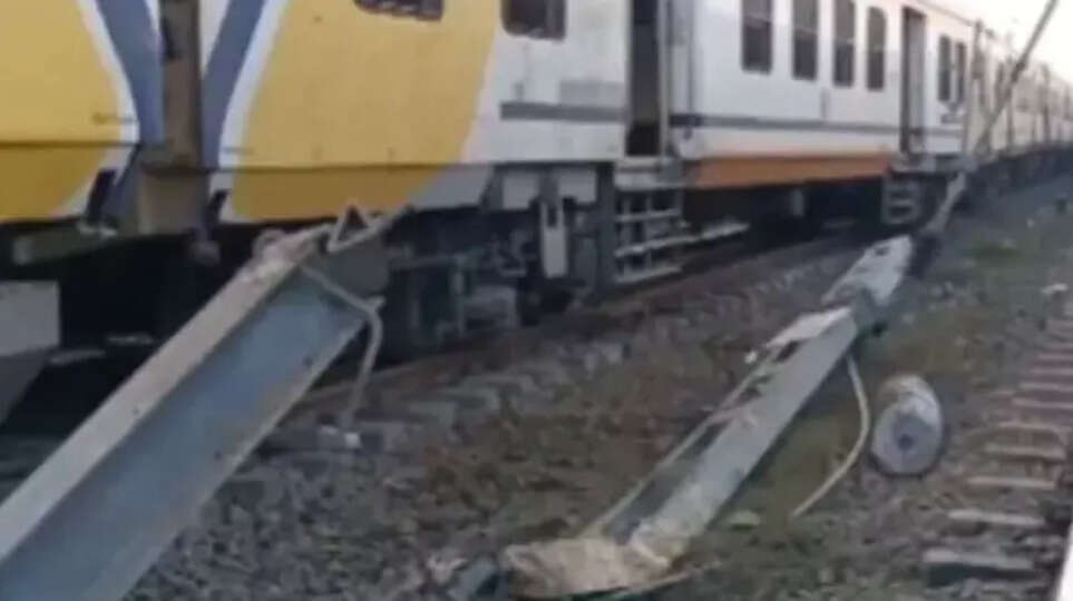 அந்த ரெயிலின் இரண்டு பெட்டிகள் தண்டவாளத்தில் இருந்து கீழே இறங்கி நின்றன. ரெயில் தடம் புரண்டதில் தண்டவாளம் அருகே இருந்த மின்கம்பம் சேதம் அடைந்தது. அதிர்ஷ்டவசமாக இந்த விபத்தில் பயணிகள் யாருக்கும் எந்த பாதிப்பும் ஏற்படவில்லை.