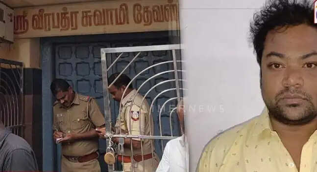 சென்னை கொத்தவால் சாவடியில் சாமி கும்பிடிவதுபோல் சென்று ஸ்ரீ வீரபத்ர சுவாமி கோவில் மூலஸ்தானத்திற்குள் பெட்ரோல் குண்டு வீசியவர் கைது செய்யப்பட்டார்.