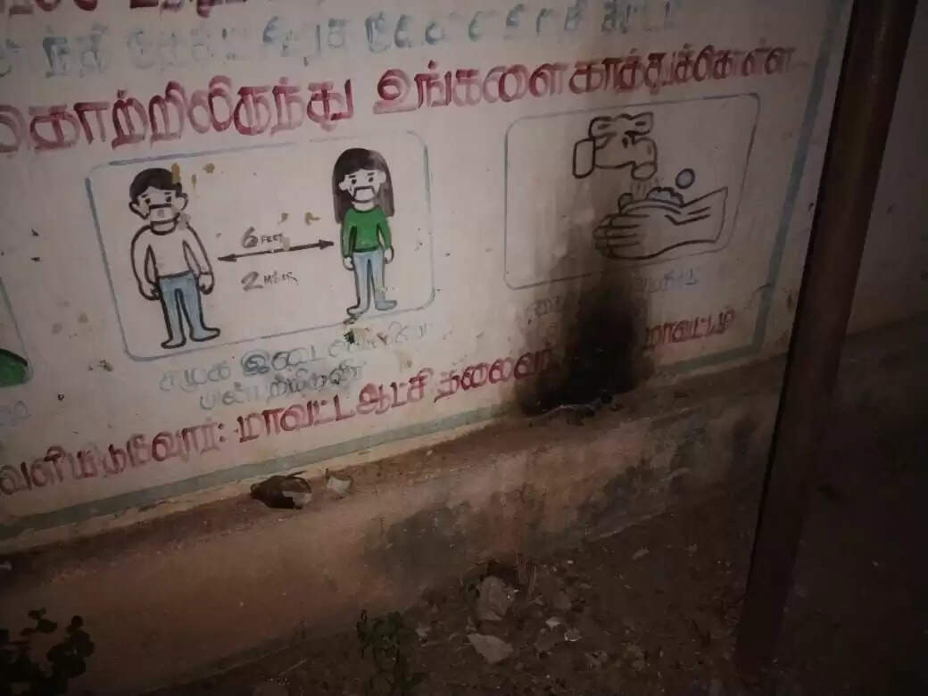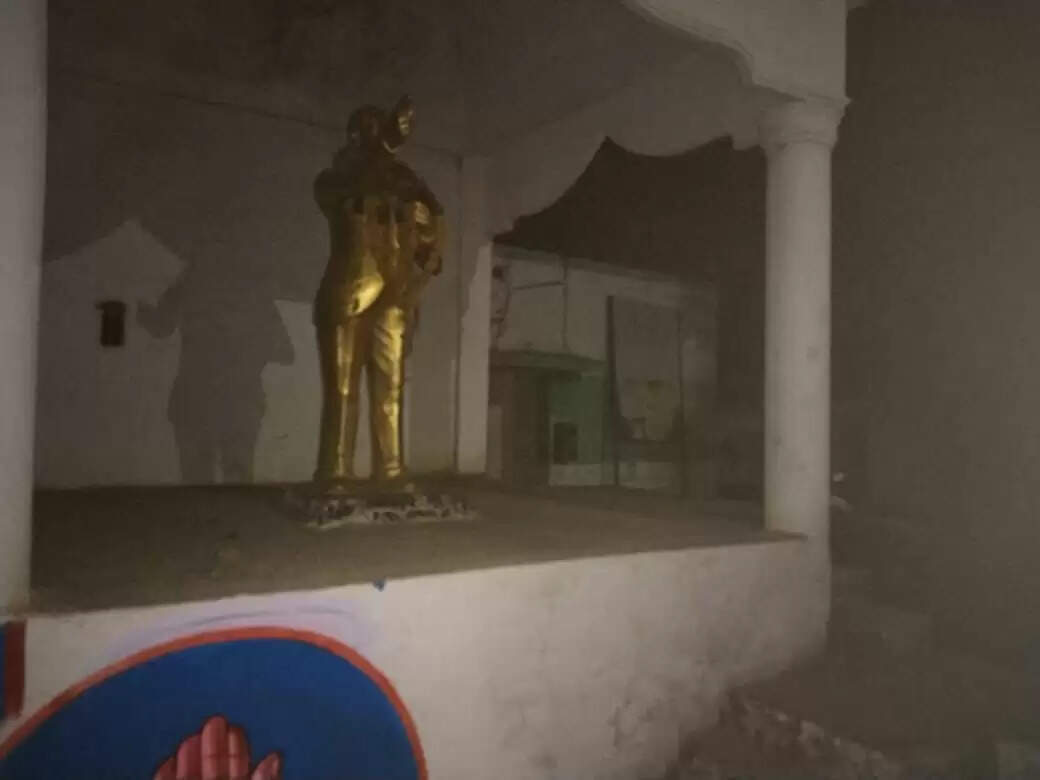 சிலை மீது பட்டு பின்னால் இருந்த பழைய ஊராட்சி மன்ற கட்டிடத்தில் பெட்ரோல் குண்டு விழுந்து வெடித்தது. இது தொடர்பாக குள்ளஞ்சாவடி போலீசார் வழக்கு பதிவு செய்ததுடன் அதே பகுதியை சேர்ந்த வெற்றி, கிருஷ்ணகுமார், சதீஷ் , விஜயராஜ் ஆகியோரை கைது செய்தனர்.