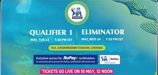 சென்னை சேப்பாக்கம் மைதானத்தில் நடைபெற உள்ள பிளே ஆஃப் சுற்று போட்டிகளுக்கான டிக்கெட் விற்பனை இன்று பகல் 12 மணிக்கு தொடங்க உள்ளது .