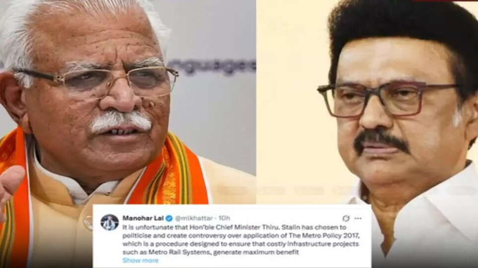 கோவை, மதுரை மெட்ரோ திட்டம் தொடர்பாக முதல்வர் கண்டனம் தெரிவித்திருந்த நிலையில், மத்திய வீட்டுவசதி, நகர்ப்புறத் துறை அமைச்சர் மனோகர் லால் கட்டார் தனது எக்ஸ் தளத்தில், “மெட்ரோ திட்டத்தை முதல்வர் ஸ்டாலின் அரசியலாக்குவது துரதிருஷ்டவசமானது. சென்னை மெட்ரோ 2ஆம் கட்டத்துக்கு ரூ. 63,246 கோடியில் ஒப்புதல் அளித்த பெருந்தன்மையை மறந்துவிட்டார். இதுவரை யாருக்கும் வழங்காத வகையில் சென்னை மெட்ரோ திட்டத்திற்கு மத்திய அரசு நிதி ஒதுக்கியது” எனக் குறிப்பிட்டுள்ளார்.