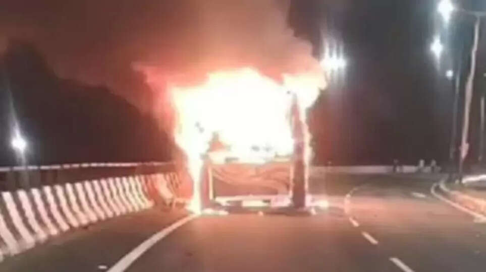 திடீரென்னு தீ பிடித்த தனியார் பேருந்து : ஓட்டுநரின் சாமர்த்தியத்தால் 27 பேர் உயிர் தப்பினர்..!