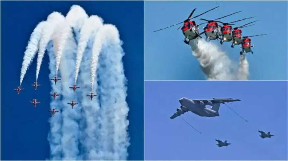 மேலும், உள்நாட்டிலேயே தயாரிக்கப்பட்ட நவீன இலகு ரக விமானமான தேஜஸ், இலகுரக போர் ஹெலிகாப்டர் பிரசாந்த் மற்றும் 1971-ம் ஆண்டு வங்கதேசத்துக்கு எதிரான போரில் பயன்படுத்தப்பட்ட டகோட்டா மற்றும் ஹார்வர்ட் ஆகிய பழங்காலத்து விமானங்களும், அதிநவீன போர் விமானமான ரஃபேல் விமானம் உள்ளிட்டவையும் இந்த சாகச நிகழ்ச்சியில் பங்கேற்று சாகசங்களை நிகழ்த்தின.