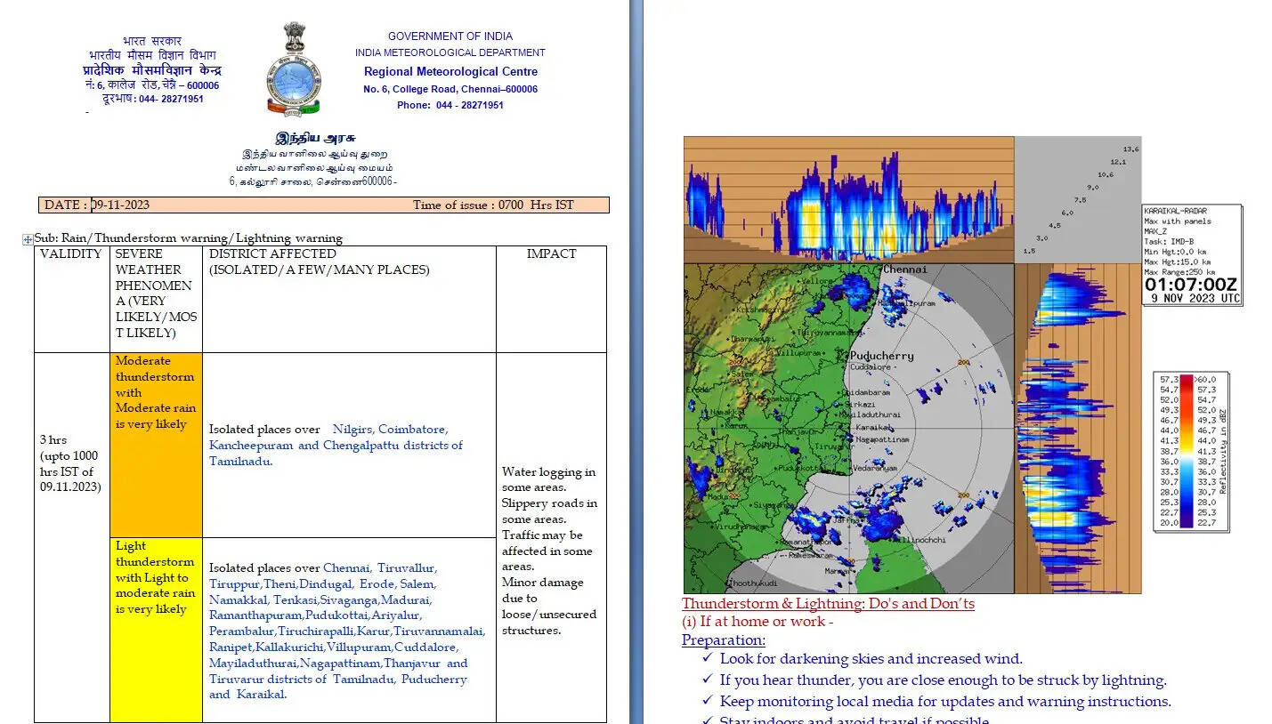 இன்று தமிழ்நாடு, புதுச்சேரி மற்றும் காரைக்கால் பகுதிகளில் அநேக இடங்களில் இடி மின்னலுடன் கூடிய லேசானது முதல் மிதமான மழை பெய்யக்கூடும். கன்னியாகுமரி, திருநெல்வேலி, தென்காசி மற்றும் தூத்துக்குடி மாவட்டங்களில் ஓரிரு இடங்களில் கனமழை பெய்யவாய்ப்புள்ளது.