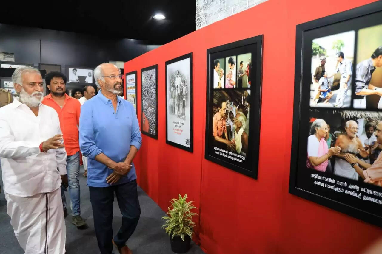 மு.க.ஸ்டாலினின் வரலாற்று புகைப்பட கண்காட்சி - நடிகர் ரஜினிகாந்த் பார்வையிட்டார்