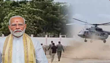 கங்கைகொண்ட சோழபுரத்தில் பிரதமர் மோடி பயணிக்கும் ஹெலிகாப்டரை இயக்கி ஒத்திகை