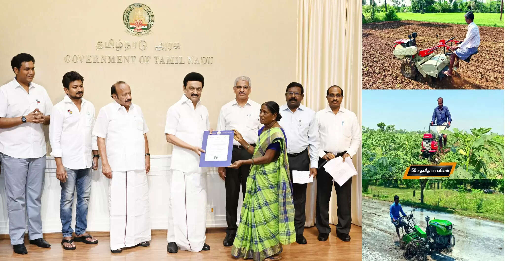 3907 பவர்டில்லர்கள் மற்றும் 293 விசை களையெடுப்பான் கருவிகளை விவசாயிகளுக்கு வழங்கி, வடகிழக்கு பருவமழை குறைவாக பெய்ததால் பாதிக்கப்பட்ட விவசாயிகளுக்கு மிதமான வேளாண் வறட்சி நிவாரண நிதியினை முதல்வர் ஸ்டாலின் வழங்கினார்.