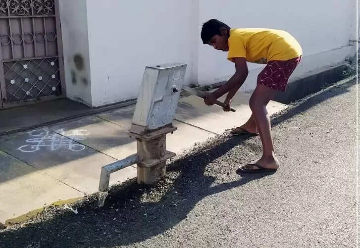 பழனி நகராட்சி 7-வது வார்டில் உள்ள கீழ் வடம்போக்கி தெருவில் பெரியநாயகி அம்மன் கோயில் முன்பு இருந்த சாலை மிகவும் சேதமடைந்து இருந்தது. தைப்பூச திருவிழா நடைபெறும் போது பெரியநாயகி அம்மன் கோயிலுக்கு அதிக அளவில் பக்தர்கள் வருகை தருவார்கள் என்பதால் சேதமடைந்த சாலையை அகற்றிவிட்டு புதிதாக சாலை நகராட்சி சார்பில் அமைக்கப்பட்டது. புதிய தார் சாலை அமைக்கும் பணியை மேற்கொண்ட ஒப்பந்ததாரர் சாலை ஓரத்தில் இருந்த ஆழ்துளை குழாயை கவனிக்காமல் கவனகுறைவாக ஆழ்துளை குழாயை மூடி சாலை அமைத்து உள்ளார்.