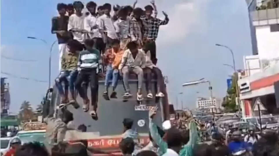 காவல்துறையினர் முன்னிலையில் நூற்றுக்கணக்கான கல்லூரி மாணவர்கள் பேருந்தை நிறுத்தி பேருந்தின் மீது ஏறி ஆட்டம் போட்டதும், கல்லூரியின் குறுக்காக நின்று சாலை மறியலை ஏற்படுத்தியதும், சாலையின் நடுவே பட்டாசு வெடித்து போக்குவரத்தை தடுத்ததுமான வீடியோக்கள் வெளியாகி பரபரப்பை ஏற்படுத்தி உள்ளது. இதையடுத்து போக்குவரத்திற்கு இடையூறு ஏற்படுத்திய மாணவர்கள் மீது நடவடிக்கை எடுக்குமாறு கோரிக்கை வலுத்துள்ளது.
