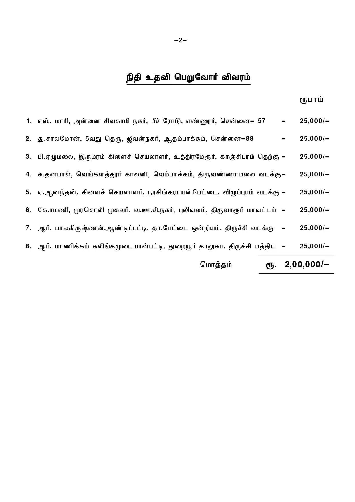 கருணாநிதி அறக்கட்டளைச் சார்பில் 8 பேருக்கு ரூ.2,00,000/- நிதியுதவி