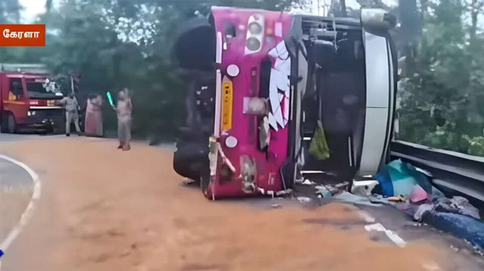 தமிழகத்தைச் சேர்ந்த ஐயப்ப பக்தர்கள் சென்ற தனியார் பேருந்து இடுக்கி மாவட்டம் குட்டிக்கானம் அருகே ஓட்டுநரின் கட்டுப்பாட்டை இழந்து கவிழ்ந்து விபத்துக்குள்ளானது.