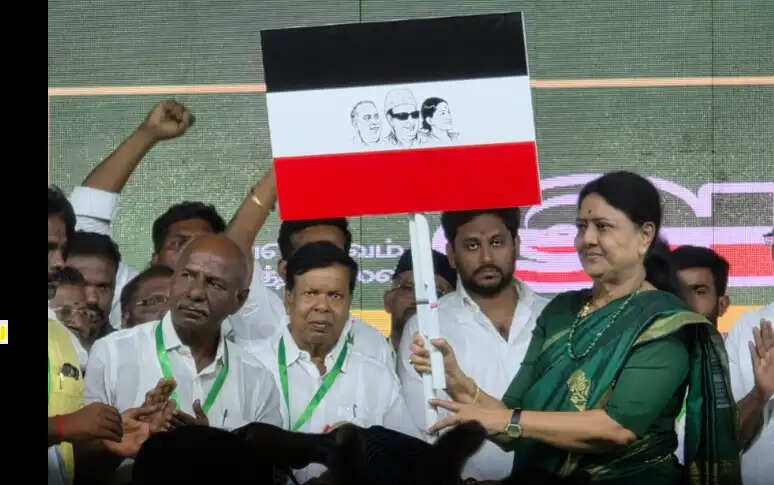 முன்னதாக பொதுக்கூட்டத்திற்கு அதிமுக கொடி கட்டிய வேனில் சசிகலா வந்தார். 2021ல் பெங்களூரு சிறையிலிருந்து அதிமுக கொடி கட்டிய சசிகலா வந்தது சர்ச்சையானது. கொடியை பயன்படுத்தக் கூடாது என அதிமுக சார்பில் டிஜிபியிடம் புகார் கொடுக்கப்பட்டிருந்தது.