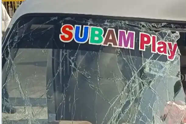 கிருஷ்ணகிரி அடுத்த கணபதி நகர் பகுதியில் தனியார் மழலையர் பள்ளி செயல்பட்டு வருகிறது. இந்த நிலையில் பள்ளி முடிந்த பின்பு ஓட்டுநர் சந்துரு என்பவர் 9 மாணவர்களை பள்ளி வேனில் அழைத்துக் கொண்டு போகனபள்ளியில் உள்ள அவர்களது வீட்டில் விடுவதற்க்காக சென்றுகொண்டிருந்தார். பள்ளி வாகனம் கிருஷ்ணகிரி - சென்னை தேசிய நெடுஞ்சாலையில் வி.ஐ.பி நகர் என்ற பகுதியில் வரும் போது திடீரென ஓட்டுநர் கட்டுப்பாட்டை இழந்து முன்னாள் சென்ற மணல் லோடு டிராக்டர் மீது மோதியது.