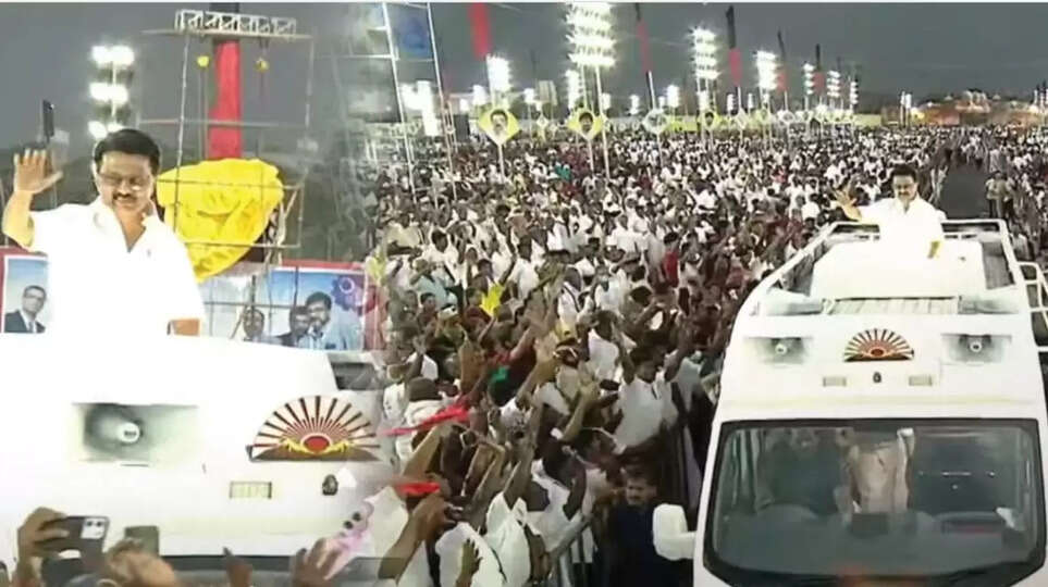 தொண்டர்கள் ஆரவாரத்திற்கு மத்தியில் முப்பெரும் விழாவுக்கு ஸ்டாலின் வருகை
