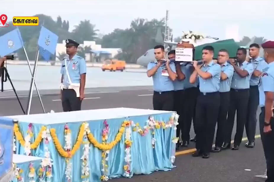 கோவை சூலூரில் இருந்து சென்ற சாகசம் செய்த தேஜாஸ் விமானம் தீப்பிடித்து விமானி உயிரிழந்தார். சூலூர் விமானப்படை தளத்தில் அவரது உடலுக்கு கோவை மாவட்ட ஆட்சியர், மாவட்ட காவல்துறை கண்காணிப்பாளர் அஞ்சலி செலுத்தினார்.