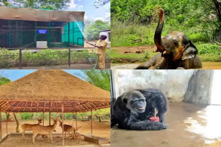 யானைகள் வெப்பத்தை தணித்துக் கொள்ள ஏதுவாக சகதிப்புரளல் குட்டை , நீர் தெளிப்பான் உள்ளிட்ட வசதிகள் அமைக்கப்பட்டுள்ளது. மனித குரங்குகளுக்கு தர்பூசணி ,இளநீர் ,வெள்ளரிக்காய், லஸ்ஸி உள்ளிட்டவை வழங்கப்பட்டு வருகின்றன. சிங்கவால் குரங்கு ,நாட்டுகுரங்கு, கருங்குரங்கு ,அனுமன் குரங்கு , கப்புச்சி குரங்கு உள்ளிட்டவற்றிக்கும் இதே உணவுகள் அளிக்கப்பட்டு வருகிறது. சிறு கரடி, இமாலய கருங்குருவி ஆகியவற்றிற்கு கோடைகால உணவாக தர்பூசணி பழம் வழங்கப்படுகிறது.
