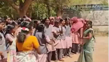 அரசு மேல்நிலைப் பள்ளியிலிருந்து பணி மாறுதல் பெற்ற ஆசிரியர்கள்- கண்ணீருடன் மாணவர்கள் பாச போராட்டம்
