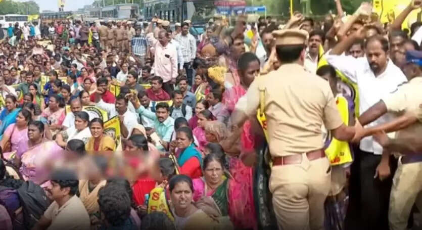 சம வேலைக்கு சம ஊதியம் கேட்டு சென்னையின் சிவானந்தா சாலை, காமராஜர் சாலை உள்ளிட்ட பகுதிகளில் ஆசிரியர்கள் போராட்டத்தில் ஈடுபட்டனர். அதேபோன்று சென்னை நுங்கம்பாக்கத்தில் உள்ள டிபிஐ அலுவலகத்தில் எதிராக செல்லும் சாலையில் அமர்ந்து சுமார் 100 க்கும் மேற்பட்ட ஆசிரியர்கள் போராட்டத்தில் ஈடுபட்டனர். அனுமதி இன்றி போராட்டத்தில் ஈடுபட்டதன் காரணமாகவும் மேலும் சாலையை மறித்து போராட்டத்தில் ஈடுபட்டு போக்குவரத்து இடையூறு ஏற்படுத்தியதன் காரணமாகவும் நுங்கம்பாக்கத்தில் 50க்கும் மேற்பட்ட போலீசார் போராட்டக்காரர்களை தடுத்து நிறுத்தி கைது செய்தனர். இந்த கைதியின் போது ஆசிரியர்கள் ஒத்துழைப்பு அளிக்காத காரணத்தால், அவர்களை போலீசார் குண்டு கட்டாக தூக்கியும் தரதரவென இழுத்துச் சென்றும் பேருந்தில் ஏற்றி அழைத்துச் சென்றனர்.