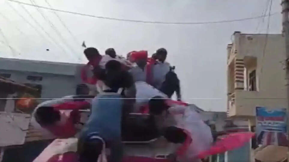 #WATCH | Telangana Minister and BRS leader KTR Rao fell down from a vehicle during an election rally in Armoor, Nizamabad district.