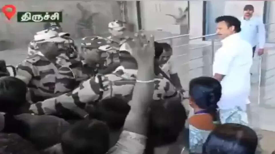 திருச்சி விமான நிலையத்திற்குள் அமைச்சர் அன்பில் மகேஷ் வருகை தந்த போது முழக்கமிட்ட அதிமுகவினரை பார்த்து சிரித்து கொண்டே சென்றார்.