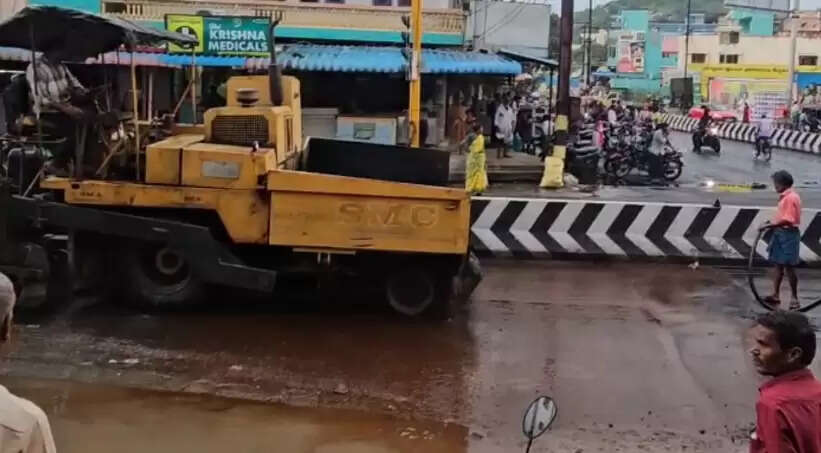 ’இதெல்லாம் நியாயமா?’ கொட்டும் மழையில் தார் சாலை அமைத்த நெடுஞ்சாலைத்துறை