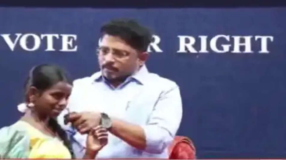விசில் ஊதி நடனமாடிய மாணவி - மேடையேறி பிடுங்கிய தேர்தல் அதிகாரி