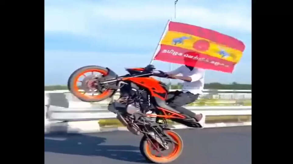 தவெக கொடியுடன் சாலையில் பைக் சாகசம் செய்த இளைஞர் காவல்துறை கைது செய்யுமா? pic.twitter.com/MmMfCFSvmH