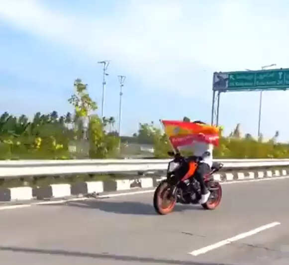 இந்நிலையில் விழுப்புரத்தை சேர்ந்த ராஜசேகர் என்ற இளைஞர் இருசக்கர வாகனத்தை அதிவேகமாக இயக்குவதும் அதில் ஸ்டண்ட் செய்வதிலும் ஆர்வம் கொண்டவர். இவர் விஜய்யின் தீவிர ரசிகராக இருந்து வருகிறார். இவர் விழுப்புரத்தில் இருந்து நாகப்பட்டினத்திற்கு புதியதாக அமைக்கப்பட்ட தேசியநெடுஞ்சாலையில் இருசக்கர வாகனத்தில் விஜய்யின் கட்சி கொடியினை கட்டி கொண்டு சாகசம் செய்துள்ளார். விஜய் கட்சி கொடியுடன் சாகசம் செய்ததை நண்பர்கள் மூலமாக வீடியோவாக பதிவு செய்து அதனை சமூக வலைதளமான இண்ஸ்டாவில் பதிவிட்டுள்ளார்.